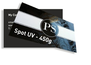 Our Spot UV business cards are printed on a 450gsm silk card and matt laminated both sides before having