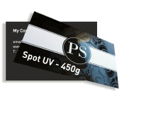 Our Spot UV business cards are printed on a 450gsm silk card and matt laminated both sides before